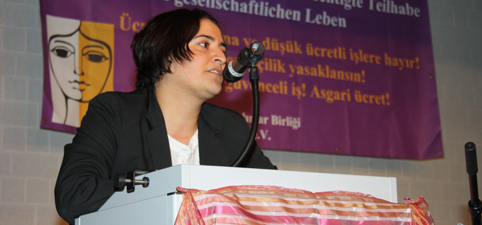SD: Diese sind selbstverständlich auch unsere Forderungen. Denn die Gleichstellung von Frau und Mann ist für uns eng verbunden mit der Frage nach ökonomischer Unabhängigkeit der Frauen, der Lohngerechtigkeit und der Arbeitssituation von Frauen. Weniger Lohn bedeutet weniger Geld am Monatsende. Immer mehr Menschen und darunter eben auch viele Frauen, sind oder werden arm, obwohl sie arbeiten. Die Frage „wie viel verdienen Frauen“ führt uns zwangsläufig zur weiteren Frage „wie arbeiten Frauen“. Weniger als 30% der arbeitenden türkeistämmigen Arbeiterinnen, sind in sozialversicherungspflichtigen Beschäftigungsverhältnissen. Darauf politische Antworten zu geben, ist eine Aufgabe, vor der wir als Verband stehen, wie auch die Gewerkschaften als auch viele andere Frauenverbände. Daneben begehen wir den internationalen Frauentag mit spezifischen Forderungen, die die gleichberechtigte Teilhabe von Migrantinnen in der Gesellschaft betreffen. Gerade Migrantinnen sind aufgrund ihres Geschlechts, ihrer sozialen Herkunft und schließlich aufgrund ihrer nationalen Herkunft einer Reihe von Diskriminierungen ausgesetzt. Aktuelle frauenpolitische Forderungen müssen daher die konkreten Problemlagen der Migrantinnen aufgreifen und einschließen. Dazu gehören ganz zentral die eigenständige, vom Ehemann unabhängige, Aufenthalts- und Arbeitserlaubnis, die flächendeckende Ausweitung von Deutschkursen –die selbstverständlich unentgeltlich sein müssen– sowie die Rücknahme aller diskriminierender Regelungen und Praktiken gegen MigrantInnen, besonders die Einschränkung des Ehegattennachzugs. Natürlich ist der Kampf gegen Rassismus und Nationalismus gerade in diesen Tagen und eben auch mit dem Bekanntwerden der Morde des „Nationalsozialistischen Untergrund“ für uns hochaktuell.